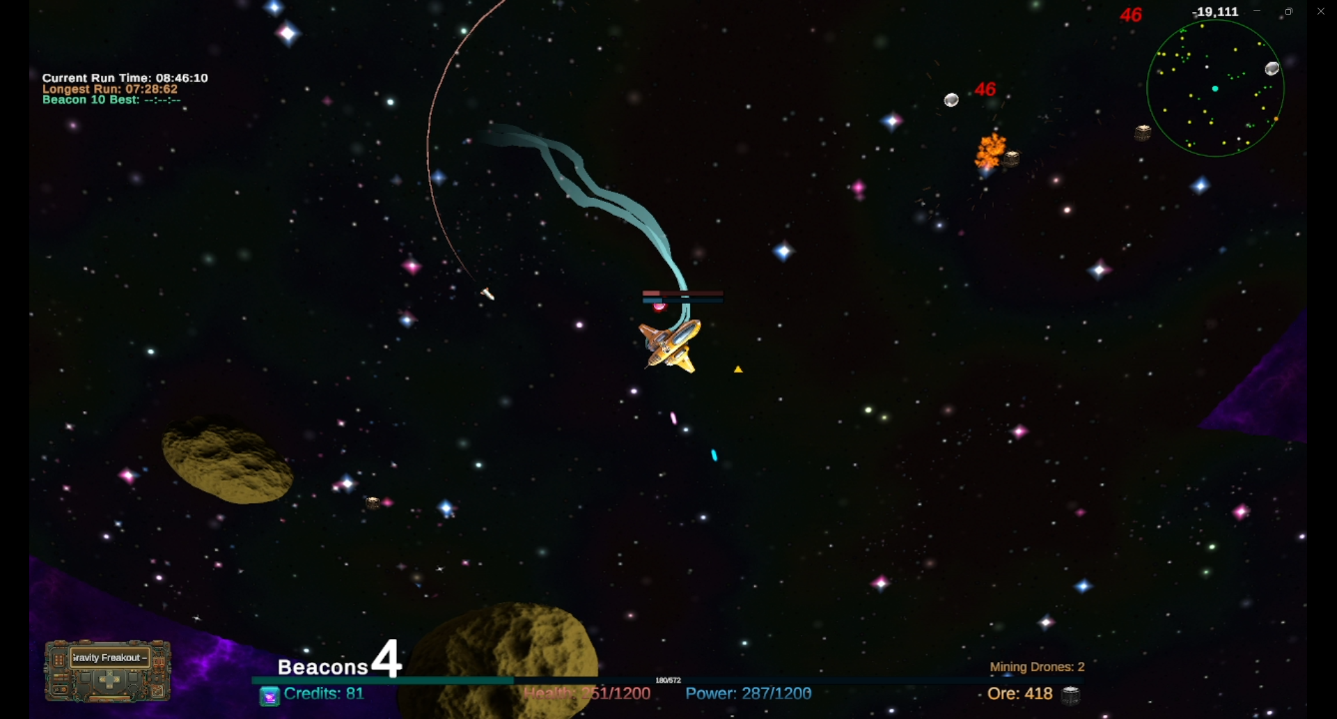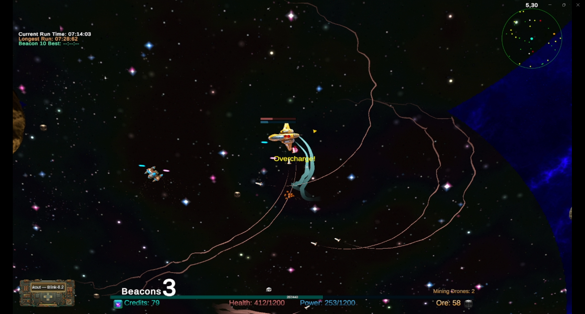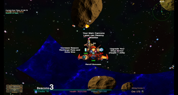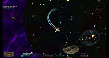 Navigate within the safety of your beacons to destroy Asteroids. Cash in at the Ore Trader for valuable upgrades or gain Credits(Used to buy Ships and other permanent bonuses in the Shop!)